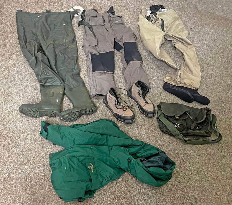 Fishing - barbour chest waders, scierra waders, vision waders and boots, fishing / gam bag etc
