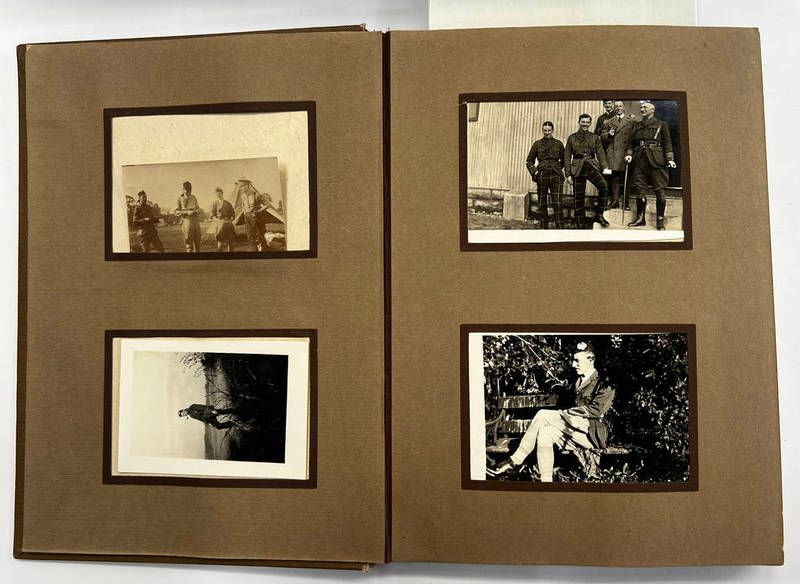 Ww1 photograph album dated 1916 with some war related images to include scottish officer on horse back, officers in tartan trews, family scenes, car scenes etc inside page marked 'margaret percy croft head 7..... park, paisley 1916'
