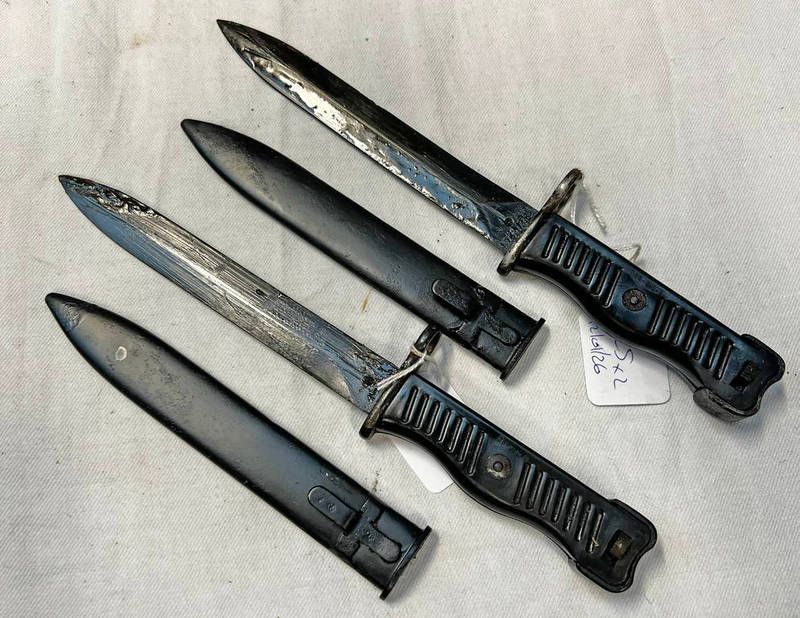 2 yugoslavian m1956 bayonets / fighting knives, both with numbered & oiled blackened steel blades