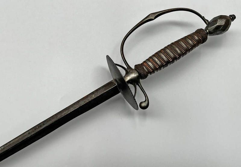 Late 18th or early 19th century small sword with 72cm long triangular blade, circular steel guard with bound grip & faceted pommel