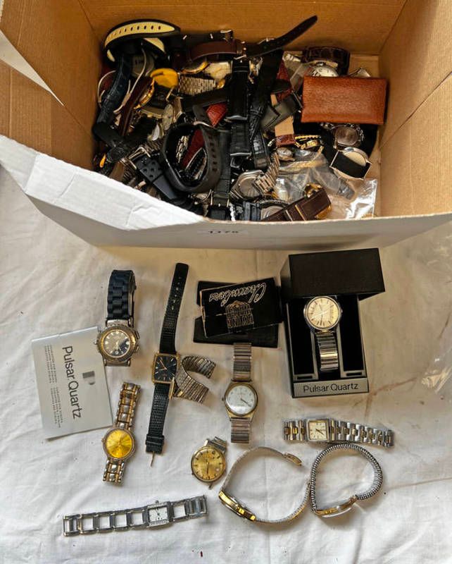 Large selection of various wristwatches and wristwatch bodies to include makers such as sekonda, timex, vogue et cin one box