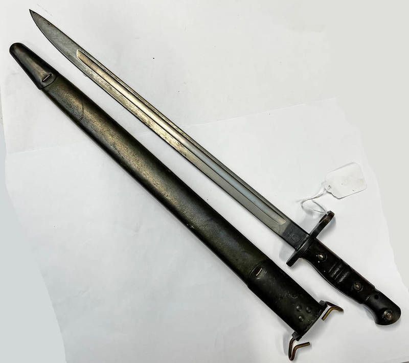 Us model 1917 remington bayonet with 43 cm long blade marked us 1917 remington with its scabbard stamped 1918, ms etc