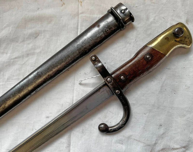 French m1892 sword bayonet with 40 cm long blade with stamp mark, hooked quillion characteristic...