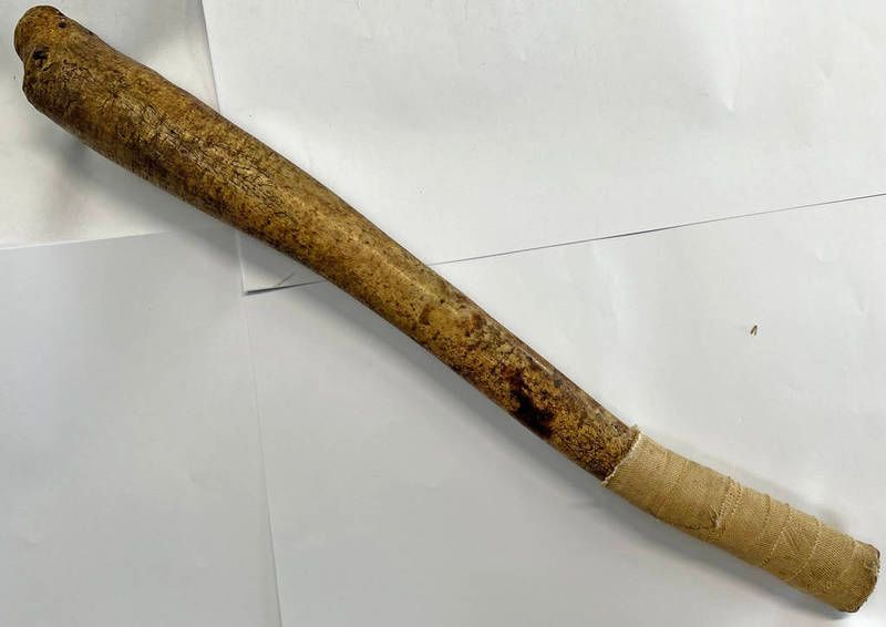 Early 20th century animal bone club with binding - by repute-previously belonging to captain william diack of the gordon highlanders, 54cm long