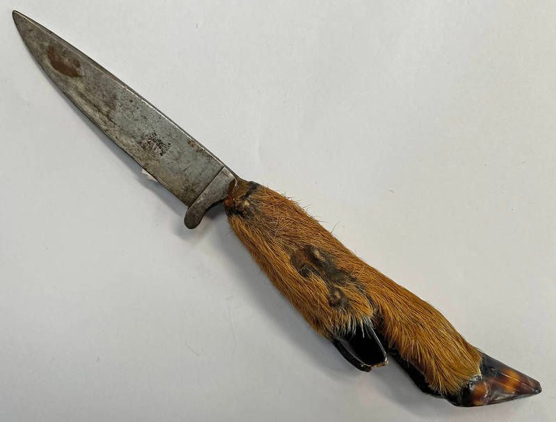 Late 19th or early 20th century deer hoof handled knife by aw jr solingen, blade is 10.5cm long
