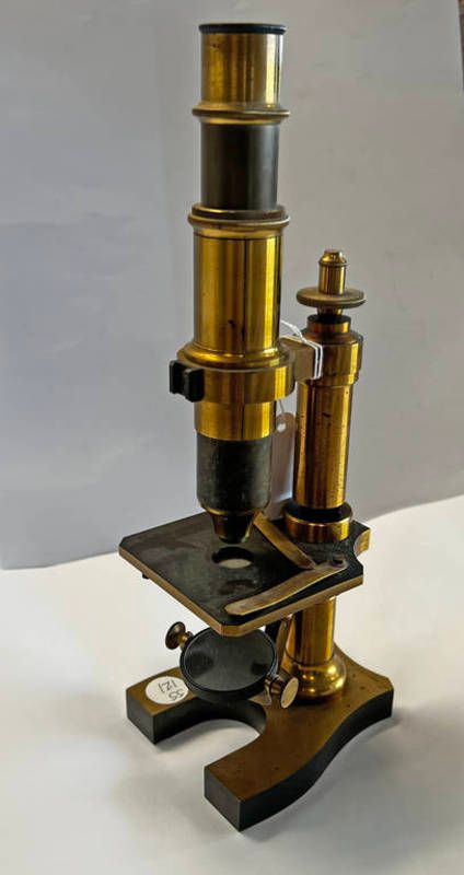 Early 20th century french gilt metal microscope by nachet, paris, no case or accessories