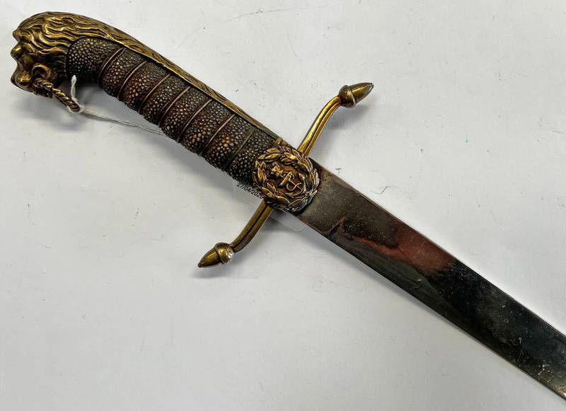 British midshipman's dirk with 45.8cm long blade that has been re-plated, shagreen grip with lion head pommel