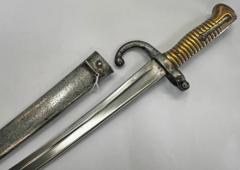 French m1866 chassepot yataghan sword bayonet with 57cm long blade marked tulle mai 1871, characteristic...