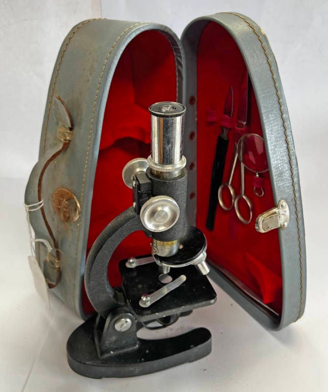 Max travelling microscope in its carry case with accessories