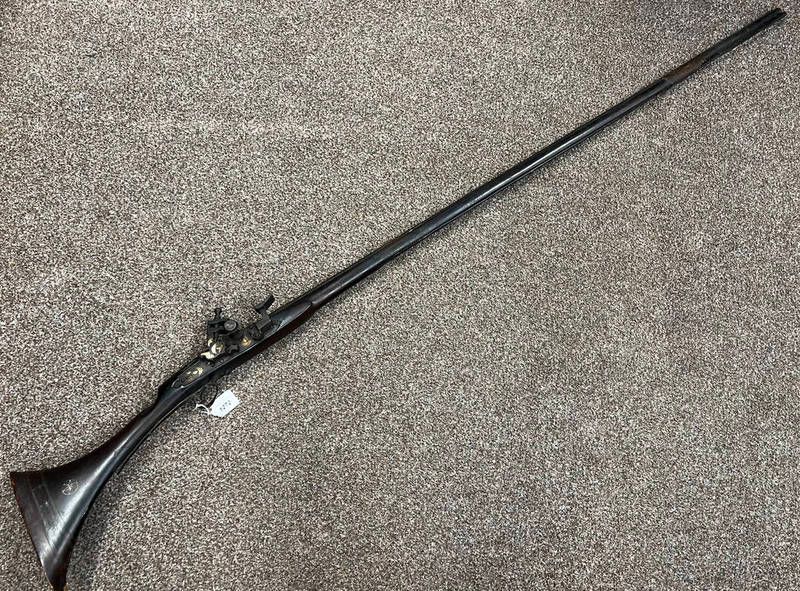 19th century single barrel percussion sporting gun with 67.5 cm long barrel, engraved locksmith remains...