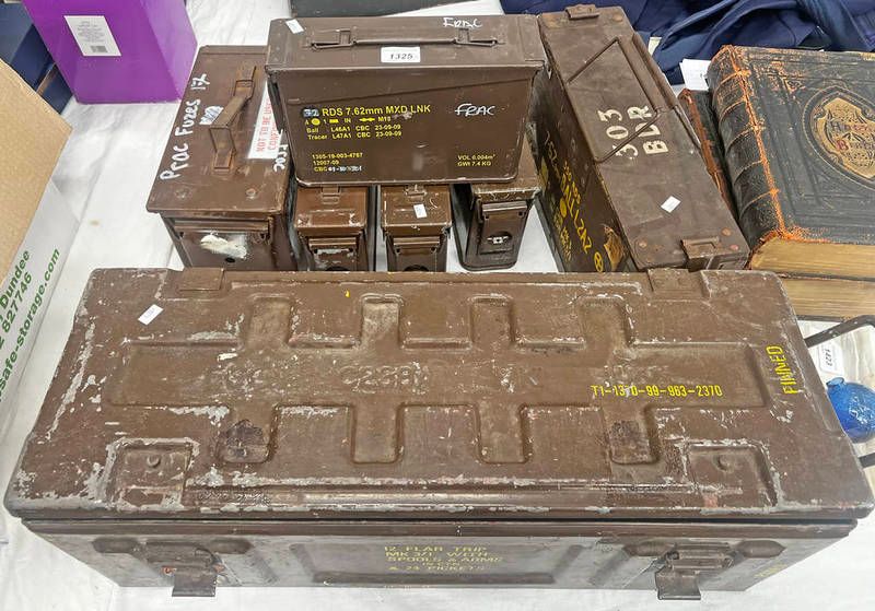Militaria to include food ration and tobacco tins, aluminium victory bell, paraffin lamps, green ww2...