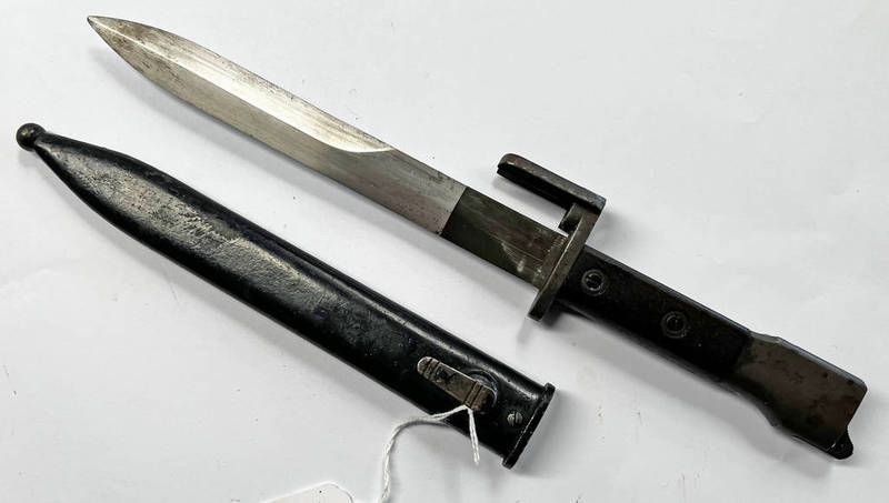 Fn fal type a bayonet with 20cm steel blade, characteristic grip with its steel scabbard