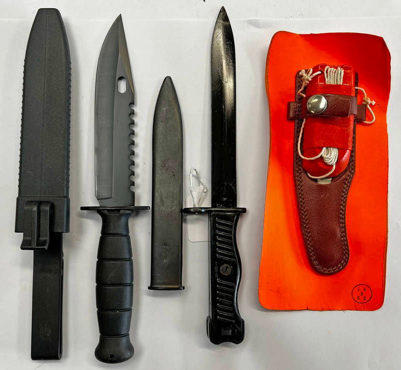 Yugo m56 bayonet with scabbard, modern tactical knife with scabbard and a floating knife with sheath -3-