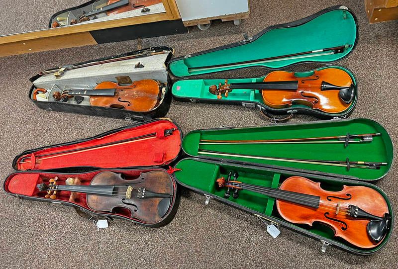 4 violins in cases