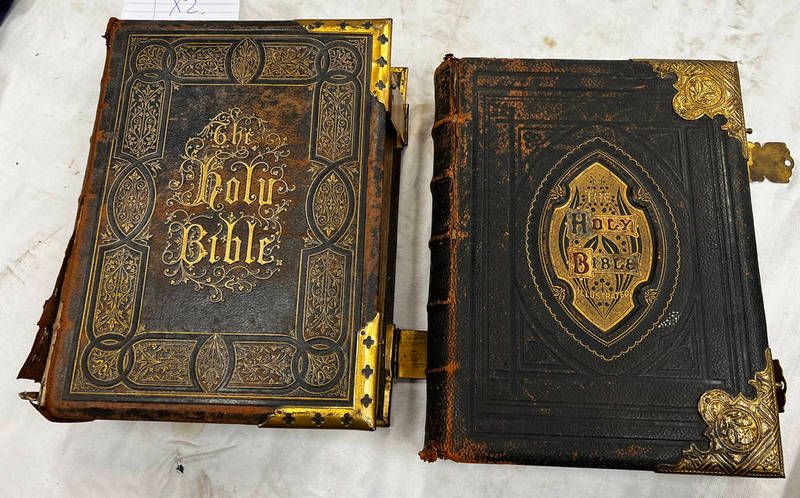 2 henry & scott chromo-lithography leather bound bibles with gilt metal latches -2-