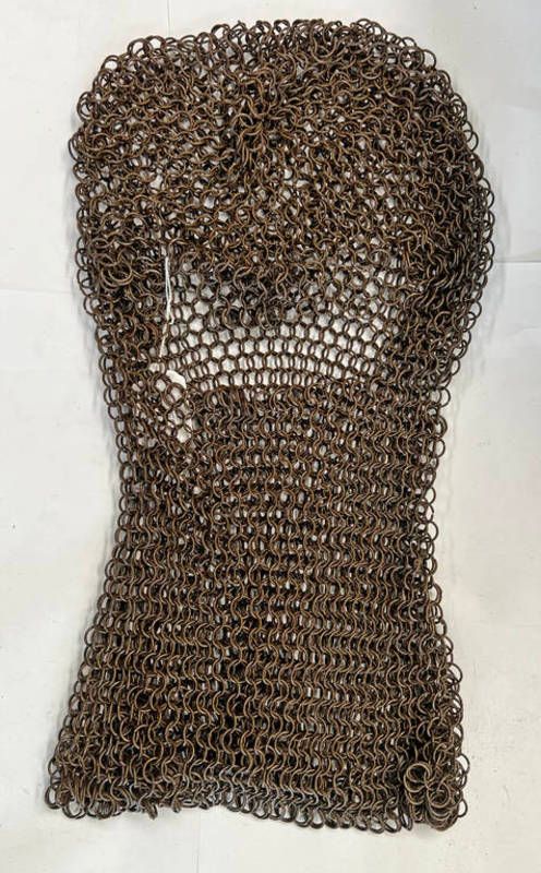 Mughal indian chain mail coif of balaclava form with face aperture & a butted link construction