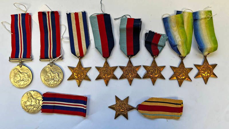 Ww2 british medals, 3 x 1939 - 45 stars, africa star, france and germany star, 2 x atlantic stars, 3 x 1939 - 1945 medals