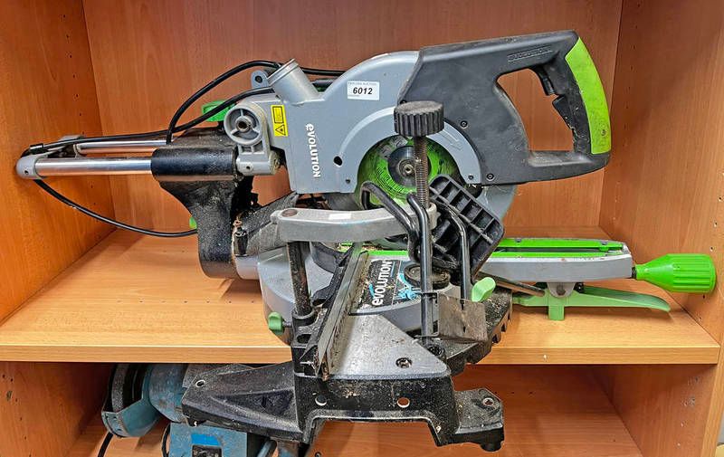 Bench grinder, scroll saw, tools to include battery saw, grease gun etc over 3 shelves