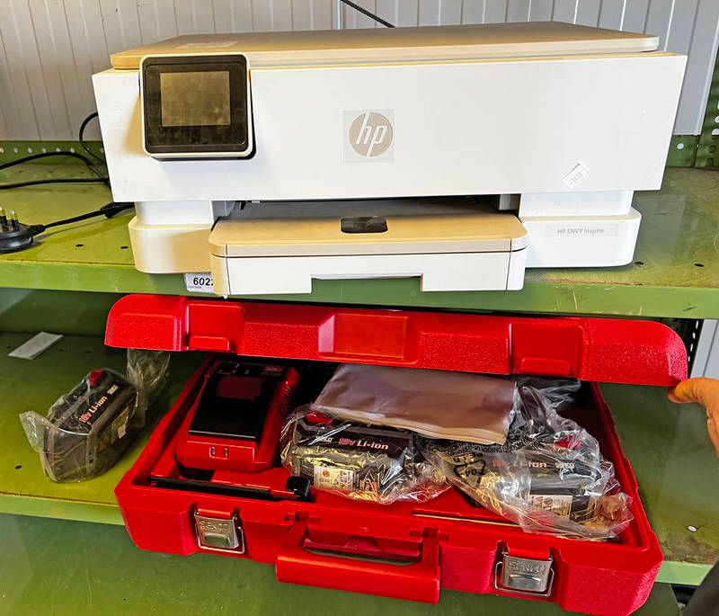 Tools to include vintage wooden box, tap and die set, angle grinders etc