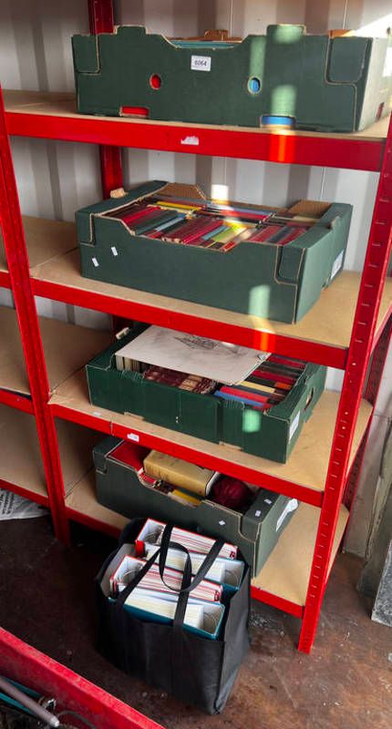 Large selection of books to include murder mystery, penguin, das reich, etc over one shelving...