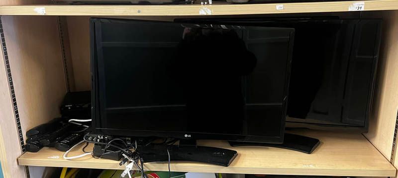 Three tv / monitors etc over one shelf