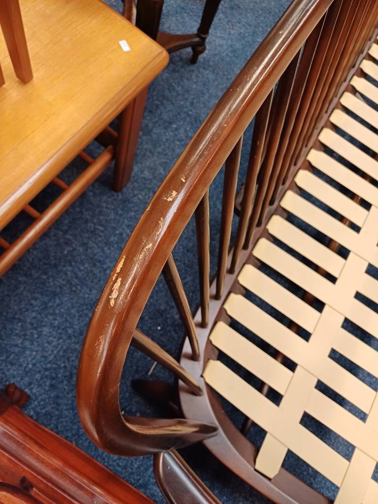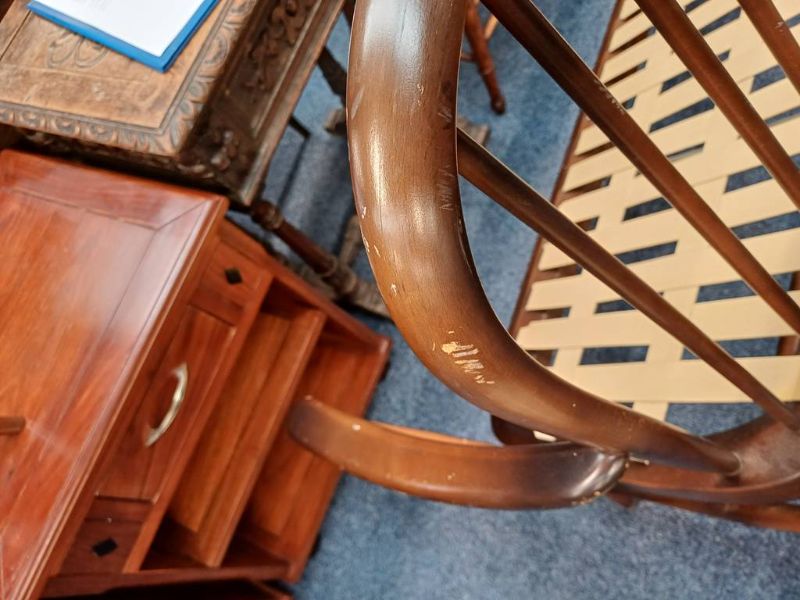 Ercol spindle back chair, nest of 3 tables, trolley, etc