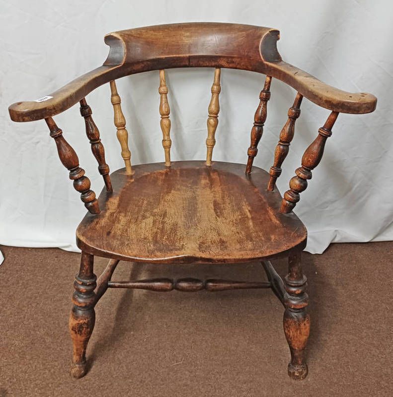 Late 19th century inlaid mahogany open armchair on ring turned supports, folding table & one...