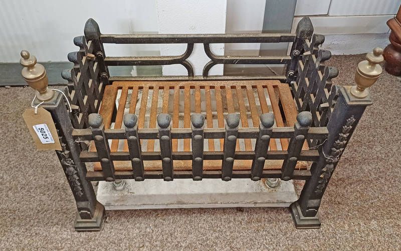 Cast iron fire trellis with brass finials