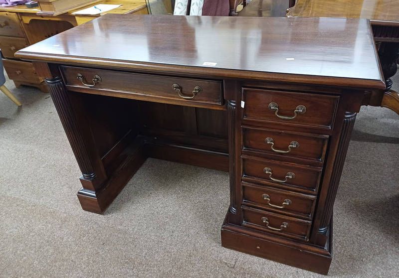 Hobbs & co mahogany knee-hole desk with leather inset top & 9 drawers - 73...