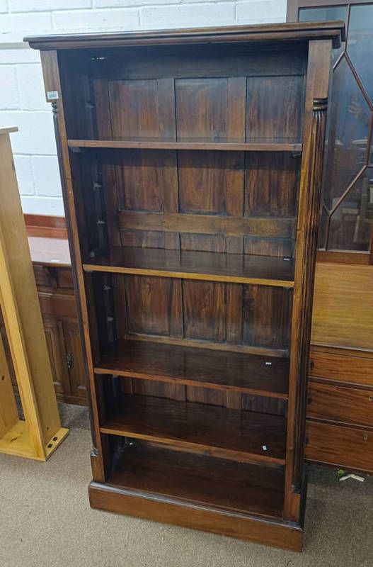 Mahogany open bookcase with adjustable shelves on plinth base - 180 cm tall x 92 cm wide