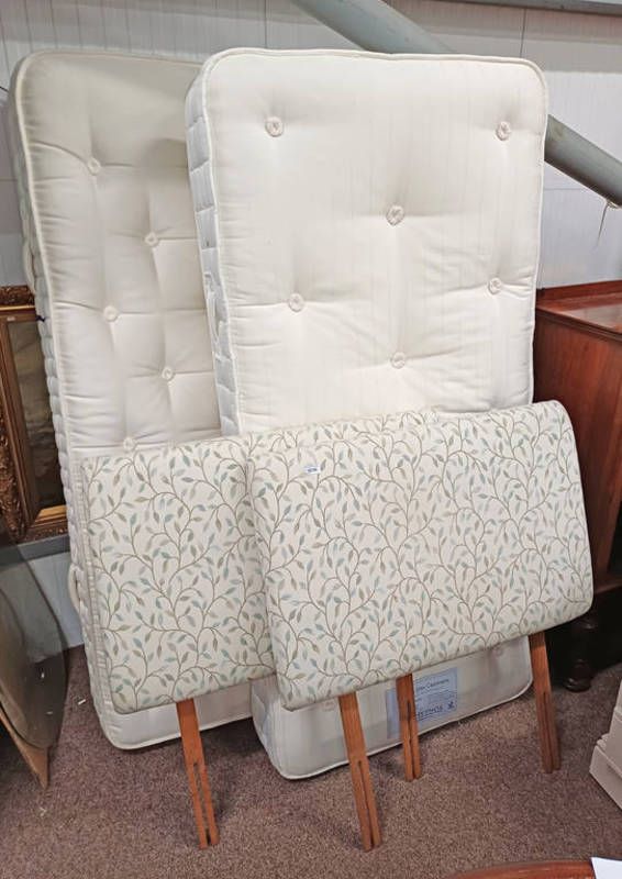 Pair of padded single bed headboards & 2 single bed mattresses