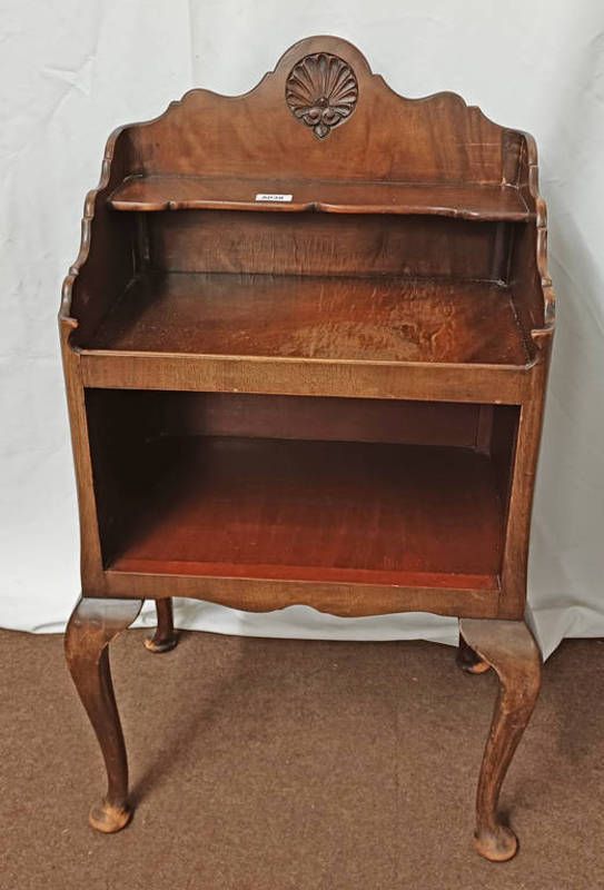 20th century mahogany bedside table with shaped back on queen-anne supports