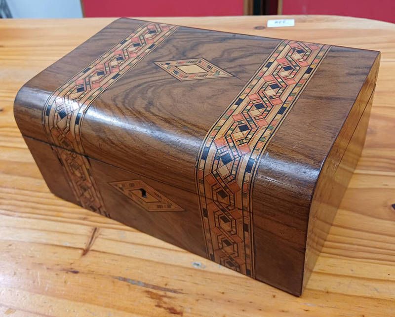 19th century walnut sewing box with fitted interior