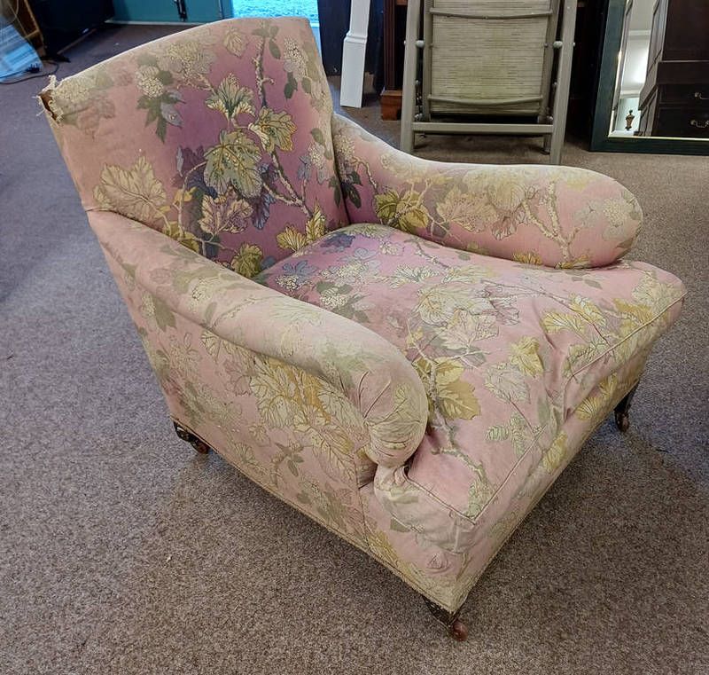 19th century overstuffed armchair on square tapered supports