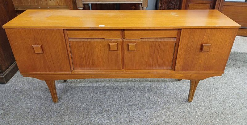Teak sideboard with 2 centrally set drawers over 2 panel doors flanked by 2 panel doors - 166 cm long