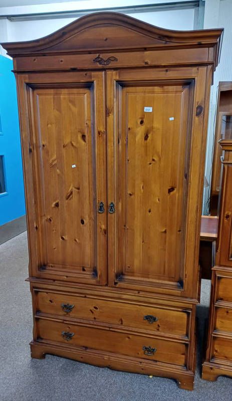 Pine wardrobe with 2 panel doors over 2 drawers manufactured by erinwood - 197 cm tall x 105 cm wide