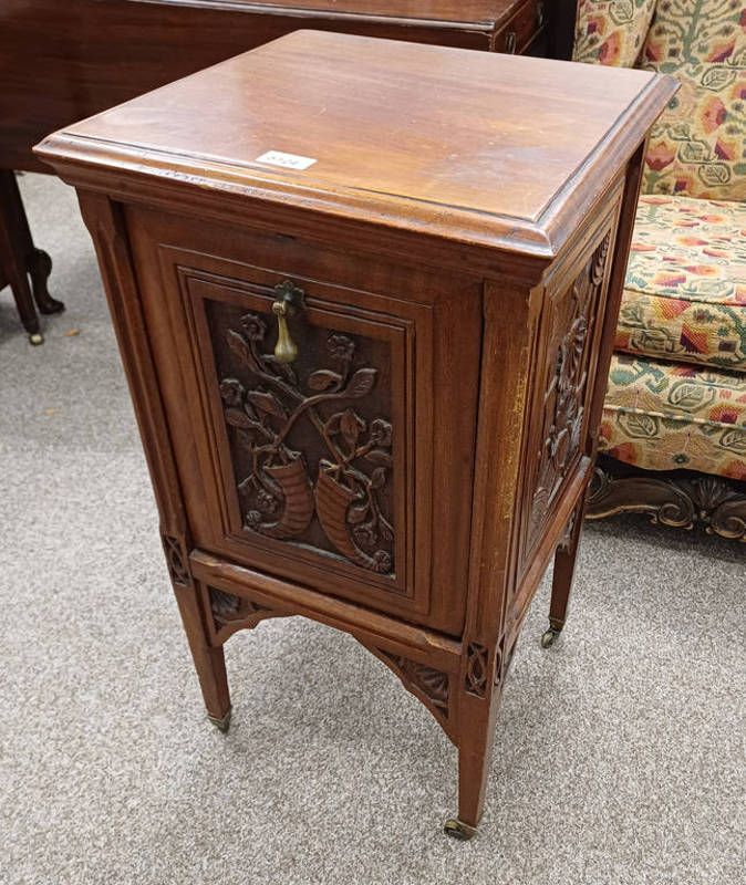 Carved mahogany purdonium with fall front converted to cabinet