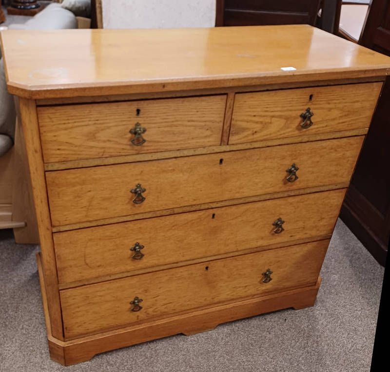 19th century ash chest of 2 short over 3 long drawers on plinth base, 100cm tall x 114cm wide