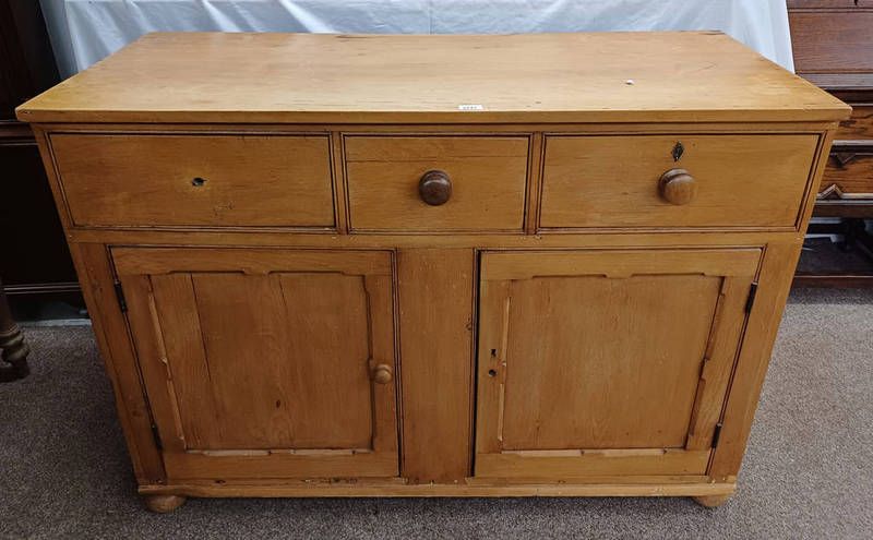 Early 20th century pine dresser with 3 drawers over 2 panel doors - 94 cm tall x 132 cm long