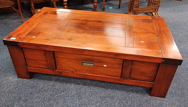 Hardwood rectangular coffee table with single double-ended drawer - 130 cm long