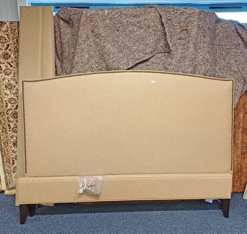 Super king padded bed frame with brass stud work from thomasvillie furniture industries, north carolina