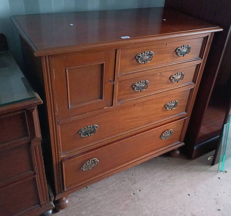 20th century mahogany chest of drawers with 2 short drawers & panel door over 2 long drawers - 99 cm tall x 100 cm wide