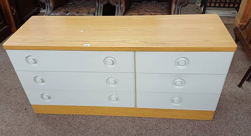 White & oak chest of 6 drawers on plinth base - 63 cm tall x 138 cm wide
