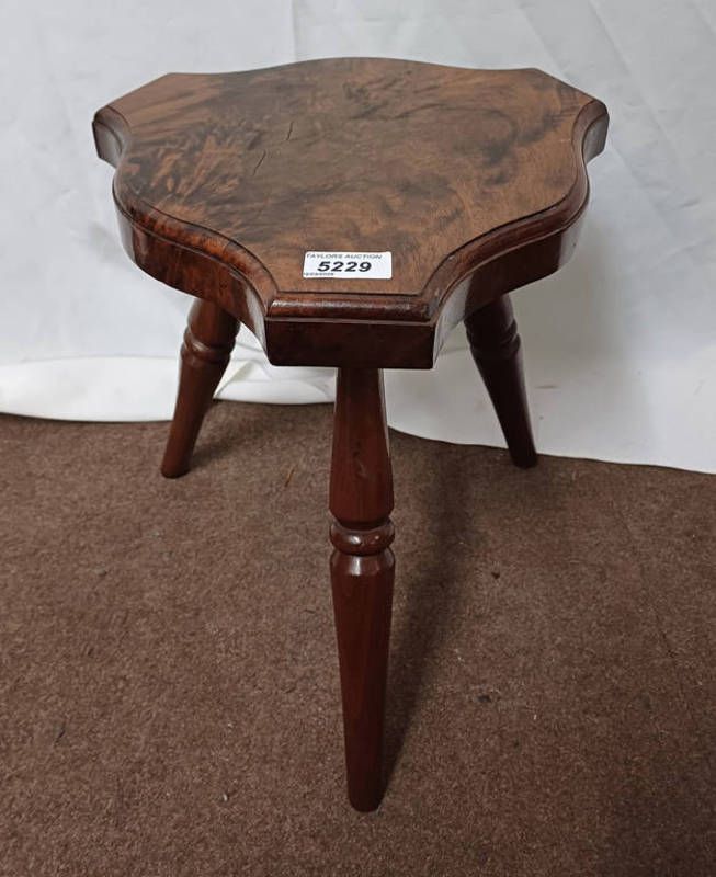 20th century walnut stool with shaped top on turned supports