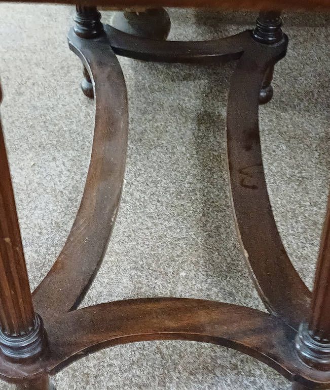 Pair of 20th century oval topped occasional tables on fluted supports with x-understretchers