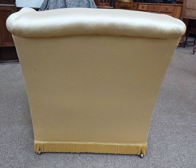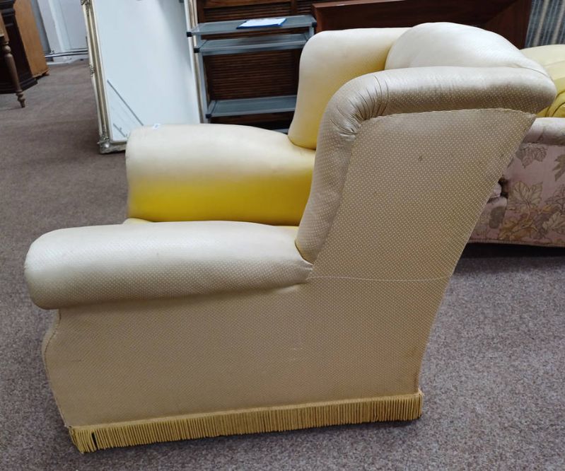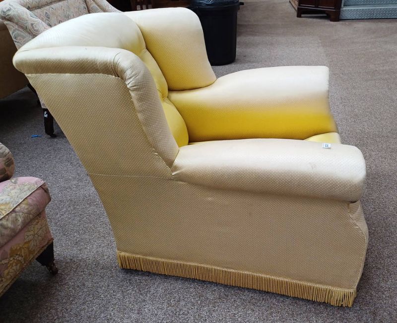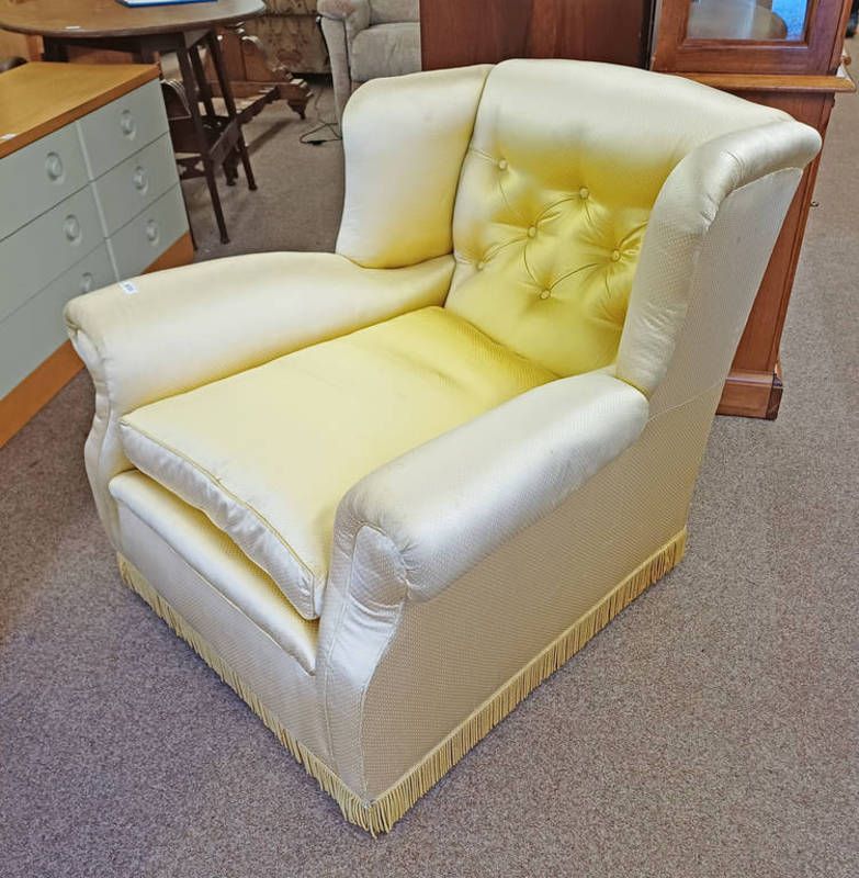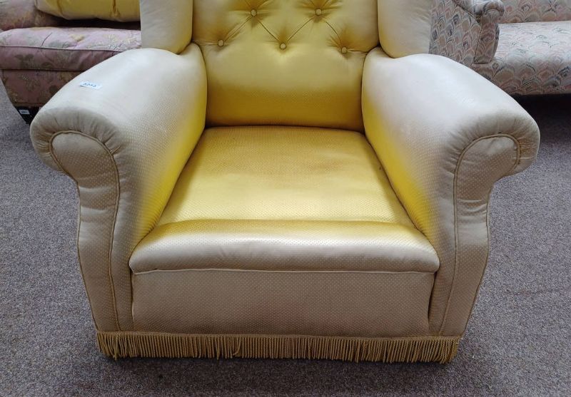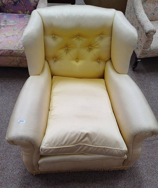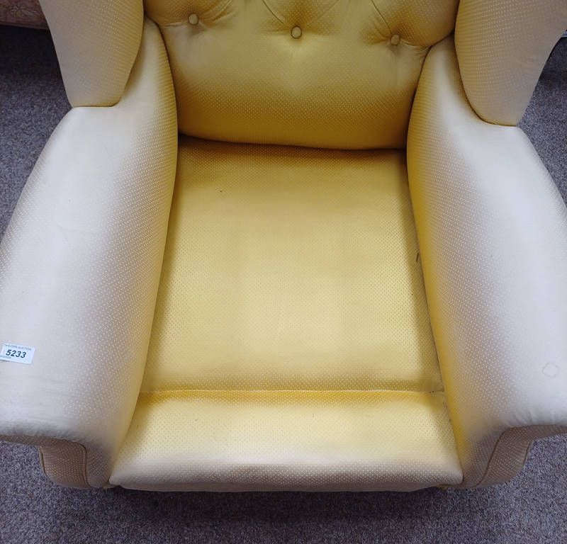 Late 19th century buttoned wingback armchair with gold pattern