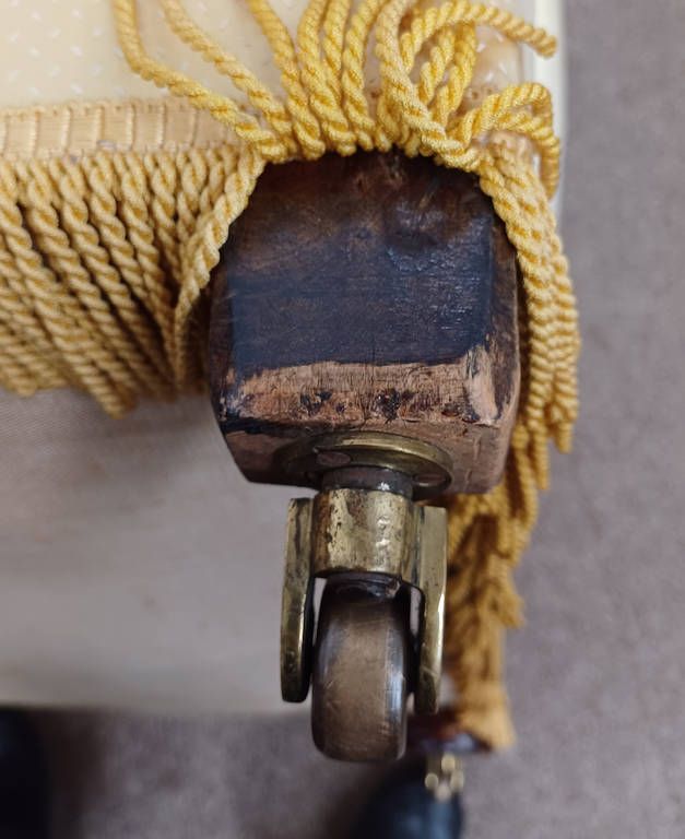 19th century buttoned chesterfield settee with shaped seat on turned supports