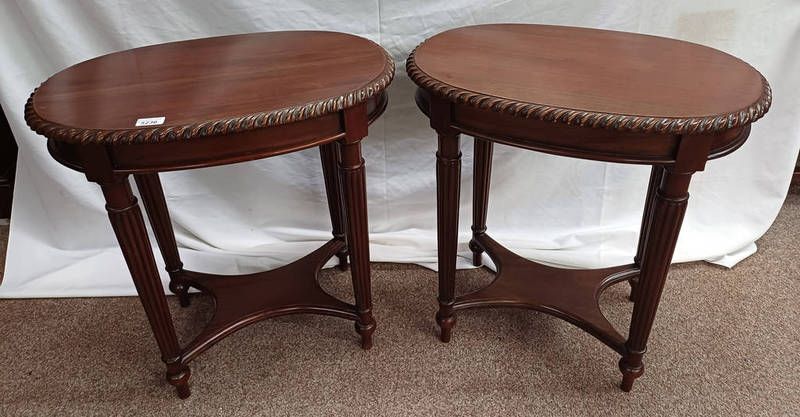 Pair of 20th century oval topped occasional tables on fluted supports with x-understretchers