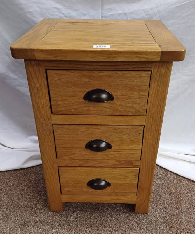 Oak 3 drawer bedside chest, 60cm tall