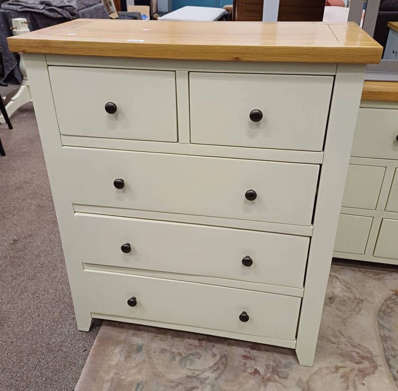White & oak chest of 2 short over 3 long drawers - 100 cm tall x 85 cm wide